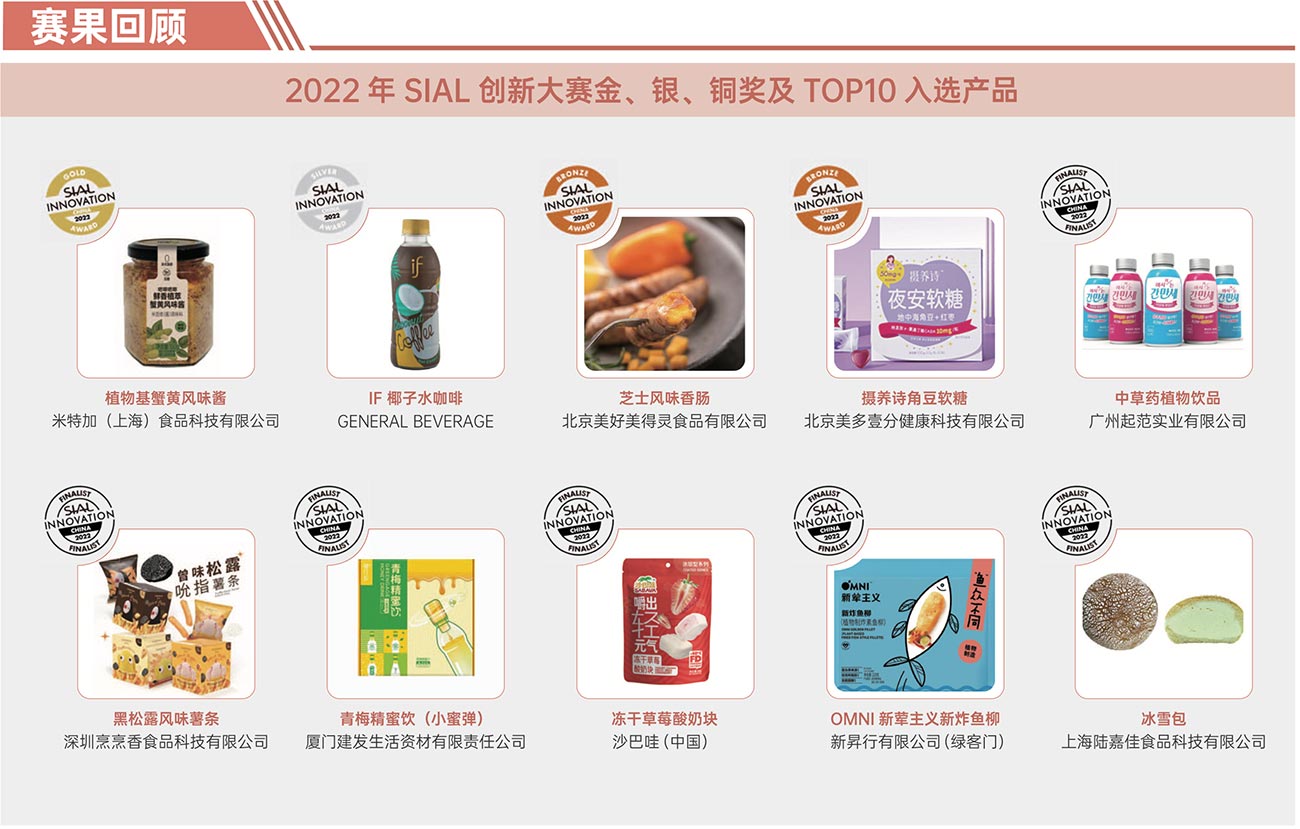 | 秉承決選出為消費者帶來切實利益的創新產品的原則,以及圍繞愉悅、健康、保健、便捷、環保五大維度,來自業內專家、學者、媒體以及咨詢機構等專業人士組成的獨立權威評審團對參賽產品進行篩選。最終來自中國、法國、韓國、日本、西班牙、越南等國家的58件產品成功入圍,包含OMNI新葷主義、星期零、SABAVA 沙巴哇、每日黑巧、梅花鄉、小牛凱西、維戛納(VEGAANA)等眾多知名品牌,其中4件產品摘取金銀銅大獎,并將在2023-2024年度SIAL全球巡展創新大賽展區進行展出。 | ||||||||||||||||||||||||||||||||||||||||