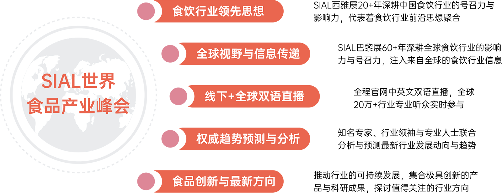 SIAL世界食品產業峰會旨在傳遞食飲行業前沿資訊,剖析行業發展新趨勢。圍繞食飲行業熱門話題及品類,SIAL世界食品產業峰會將邀請全球頂尖專家學者參與并發表主題演講,參會人士也有機會就行業熱門議題進行深入探討,助力食飲企業獲得更多高價值合作商機和行業信息。