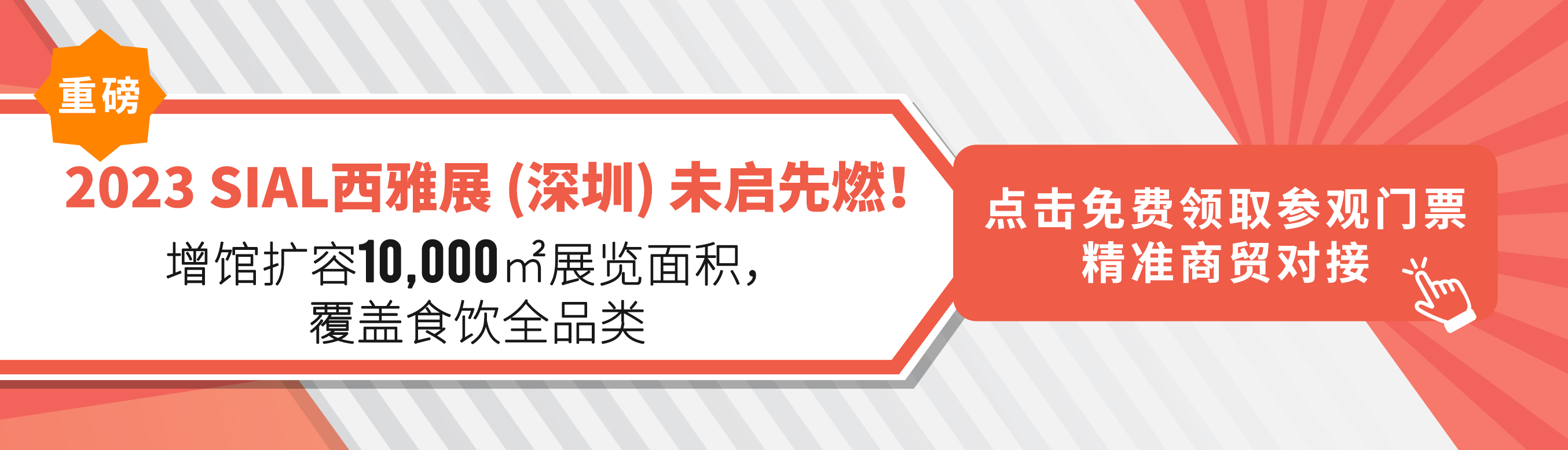 | 2023年8月28-30日,SIAL 西雅展 (深圳)將在深圳會(huì)展中心 (福田)盛大舉辦,經(jīng)過(guò)60年國(guó)際品牌沉淀,23年中國(guó)市場(chǎng)深耕,作為覆蓋全品類(lèi)的華南國(guó)際食飲交易展,為滿足市場(chǎng)日益蓬勃的成交需求,SIAL西雅展 (深圳)將在原有規(guī)模上增設(shè)10,000平米的展覽面積,展覽面積將達(dá)45,000平米,向行業(yè)和展商提供更佳的服務(wù)場(chǎng)景。 | |||
