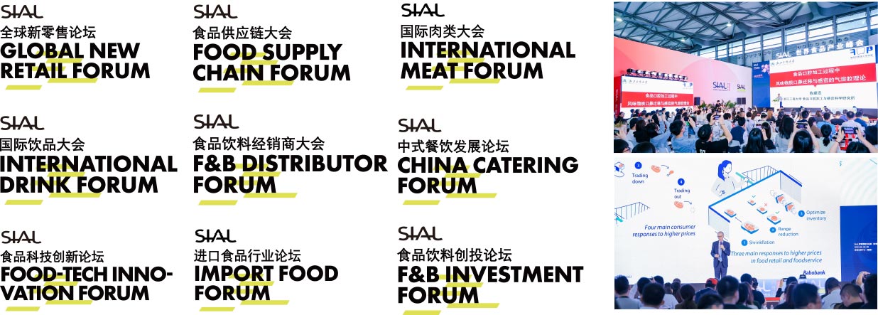 | SIAL創(chuàng)新大賽 / 引領(lǐng)食飲創(chuàng)新風(fēng)尚 SIAL 中國(guó)茶飲調(diào)配師大賽 / 健康茶飲,樂(lè)享生活 美食廚房LA Cuisine中國(guó)國(guó)際頂級(jí)廚師邀請(qǐng)賽 / 匯集全球頂尖大廚烹飪創(chuàng)意 SIAL中餐廳 / 中國(guó)風(fēng)味蕾新體驗(yàn) SIAL航旅餐錦標(biāo)賽 / 引領(lǐng)航旅餐行業(yè)的最新發(fā)展趨勢(shì) SIAL 零食節(jié) / 集合新興零食消費(fèi)場(chǎng)景 SIAL CUP 咖啡師全能賽 / 領(lǐng)略國(guó)內(nèi)專(zhuān)業(yè)咖啡師風(fēng)采活力 鮮生活·名優(yōu)水產(chǎn)食材推介 | |||