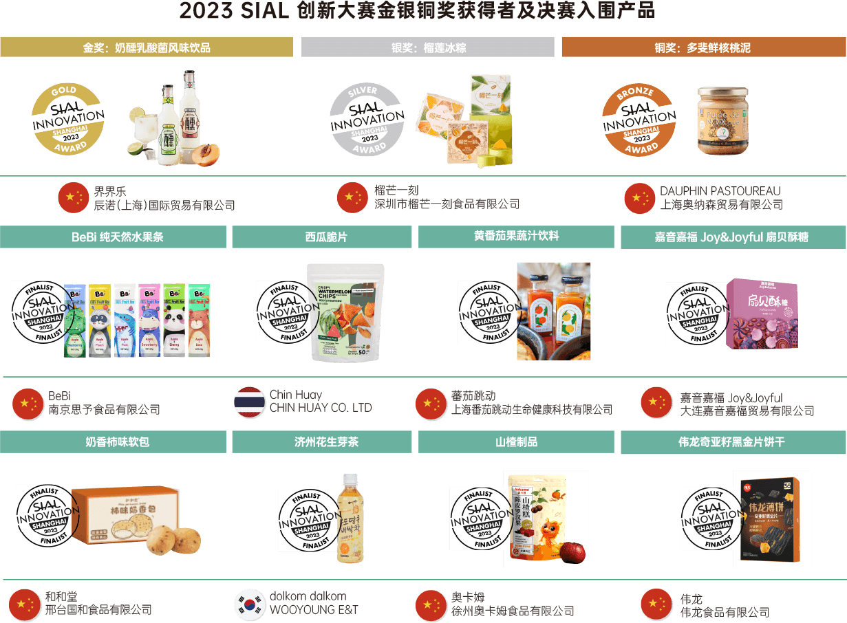 | *金銀銅獲獎(jiǎng)產(chǎn)品將在西雅展全球系列展會(huì)SIAL NETWORK的12個(gè)城市展出 | |||