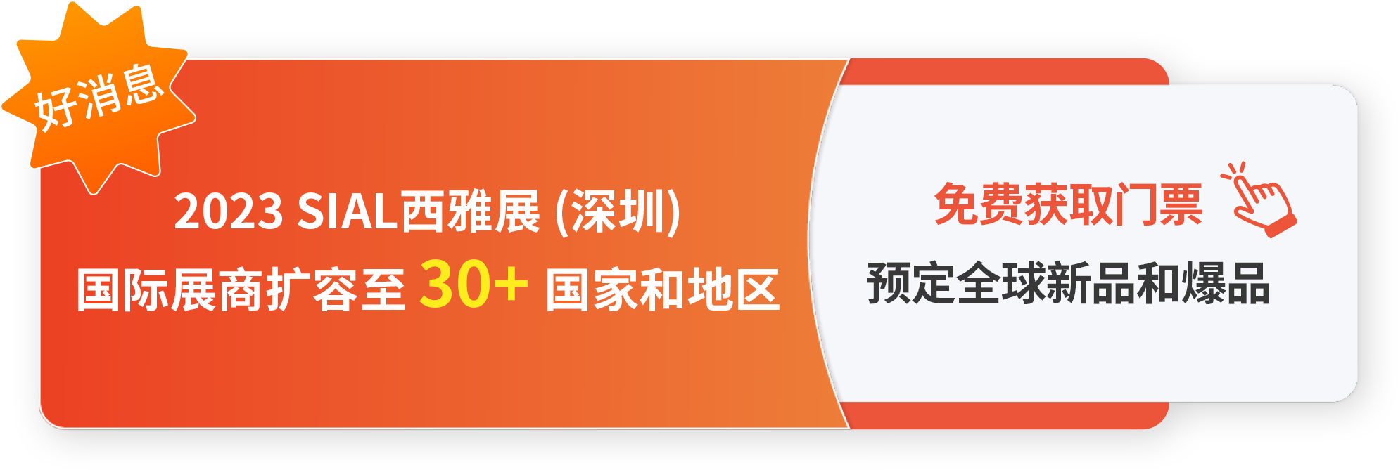 2023 SIAL西雅國際食品展(深圳)將于2023年8月28-30日在深圳福田會展中心拉開序幕。作為覆蓋全品類的華南國際食飲交易展,現場將有1,200+國內外食飲企業攜60,000+產品亮相,助您精準貿易對接。