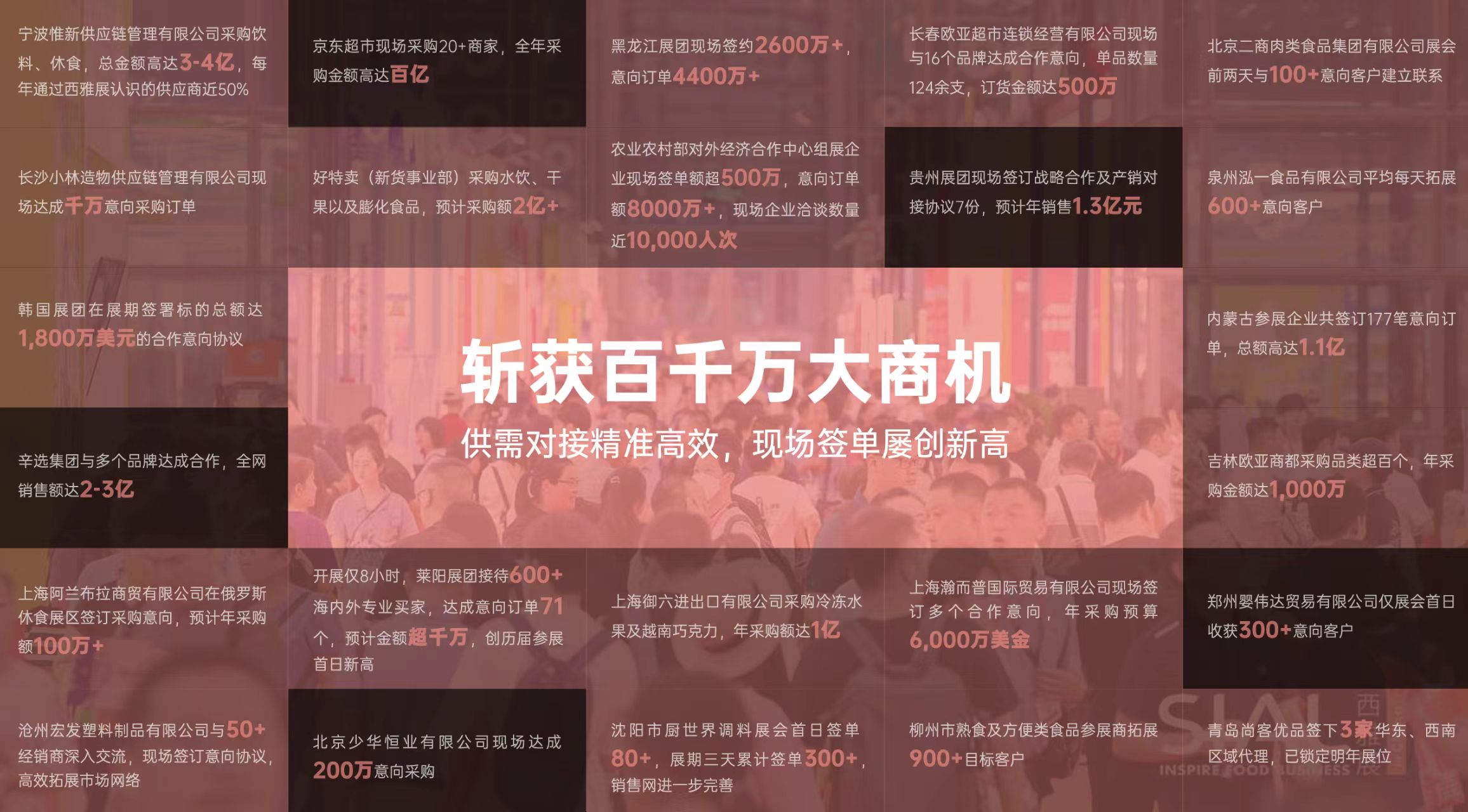 為什么2026 SIAL西雅國(guó)際食品展值得您押注?1. 全球資源匯聚,打造高效商貿(mào)平臺(tái)展覽面積達(dá)20萬(wàn)㎡,匯聚來(lái)自75個(gè)國(guó)家和地區(qū)的5,000+展商 吸引125個(gè)國(guó)家和地區(qū)的180,000+專業(yè)買家,其中近60%為采購(gòu)決策者 覆蓋京東、天貓、永輝、盒馬、山姆、便易星、胖東來(lái)、長(zhǎng)春歐亞等全渠道中高端買家,以及全球進(jìn)口商、經(jīng)銷商 2.精準(zhǔn)商貿(mào)對(duì)接,訂單轉(zhuǎn)化看得見(jiàn)Match Me供需對(duì)接服務(wù):提前鎖定高意向買家,現(xiàn)場(chǎng)高效洽談 2025年展會(huì)商貿(mào)成果: 湖北展團(tuán)多個(gè)企業(yè)累計(jì)簽單3,000萬(wàn)元,海外訂單占比35% 黑龍江展團(tuán)企業(yè)現(xiàn)場(chǎng)簽約超2,600萬(wàn)元 煙臺(tái)天鷺食品借展會(huì)成功開(kāi)拓北美市場(chǎng) |