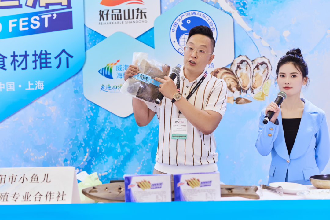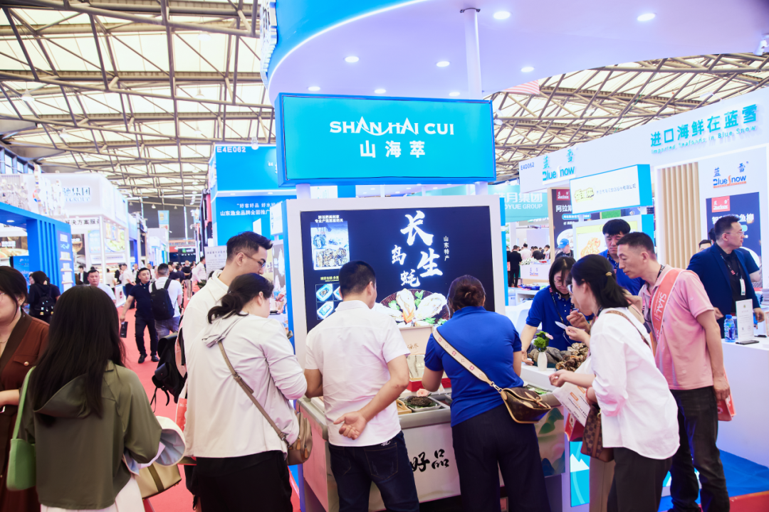 在上海新國際博覽中心E4館水產專區,熱鬧非凡的“好客好品 好水好魚”水產展示區吸引了眾多采購商的目光。展區內,“好當家”威海刺參、“裕鮮舫”深海野游大黃魚、“燈塔水母”氮凍半殼牡蠣、“小魚兒”煙臺大菱鲆、“恒盛”黃河口大閘蟹、“山海萃”長島生蠔、“美加佳”生食甜蝦、“我愛漁”銀鱈魚、“京魯遠洋”天婦羅蝦、“香滋來”麻辣小龍蝦仁、“崟海”三文魚烤串、“佳寶水產”魷魚仔……各式各樣的山東水產品琳瑯滿目,從深海珍品到淡水佳肴,從鮮活海鮮到加工制品,無不彰顯著山東水產品類的豐富多樣和品質地道。背靠大陸、面朝海洋的優越地理環境和得天獨厚的海洋資源孕育出的口感鮮美、營養豐富的“魯”字號水產品、加工產品及海洋休閑零食等,贏得了駐足采購商的一致好評,并達成多項采購意向。