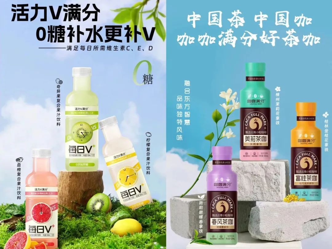 近日,北京潮咖集團推出了茶咖和果汁新品。其中,咖咖滿分咖啡甄選100%云南阿拉比卡小粒咖啡,特級原茶萃取,無菌冷罐鎖鮮,新西蘭奶源,暢飲大容量;活力V滿分定位為復合果汁飲料,無菌冷罐,0添加蔗糖,補水的同時滿足每日所需維生素E、C、D。