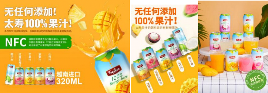 《植物水市場(chǎng)規(guī)模、份額、增長(zhǎng)和行業(yè)分析》中指出,椰子水、楓樹(shù)水和樺樹(shù)水是全球最受歡迎的植物水品類(lèi)。太壽100%椰子水中含有豐富的鈉、鎂、鉀等礦物質(zhì),能夠快速補(bǔ)充電解質(zhì),成分健康零添加、口感清爽味道好、低糖低卡不長(zhǎng)胖。除了椰子水,太壽100%果汁也備受消費(fèi)者喜愛(ài),該產(chǎn)品全部選自越南當(dāng)?shù)厮a(chǎn)區(qū)的成熟新鮮水果。越南是熱帶季風(fēng)氣候,光照充足,雨量充沛,特別適合熱帶水果生長(zhǎng),產(chǎn)出的熱帶水果口味極佳。同樣,該產(chǎn)品采用的也是NFC非濃縮還原工藝,配料表只有果汁,不存在任何添加劑和勾兌,直接由鮮果壓榨(打漿)制得,沒(méi)有經(jīng)過(guò)濃縮后再兌水,不但能更好地保留水果原有的口味,更能鎖住更多營(yíng)養(yǎng),更加健康。