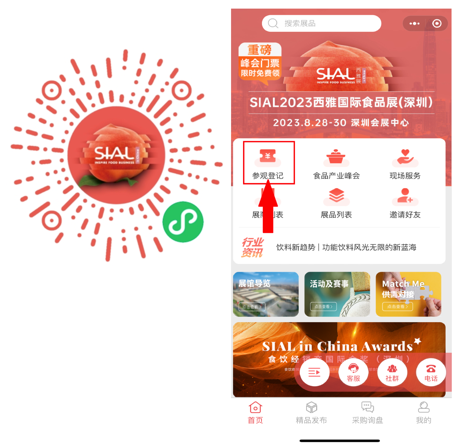 SIAL西雅展(深圳)與第五屆SIAL世界食品產業峰會即將開幕,立即掃碼預約,到場出示身份證件或預登記二維碼或領取胸卡即可入場。