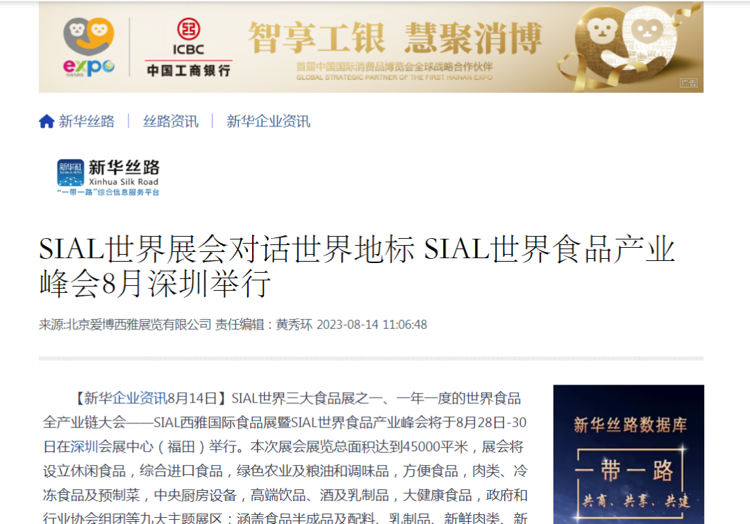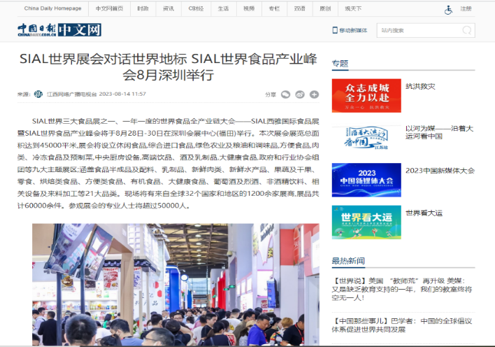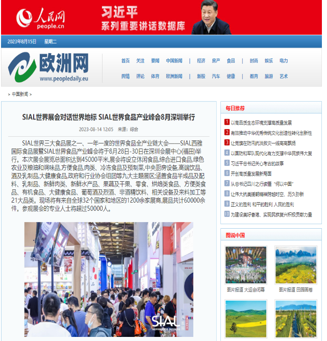 人民網等百家主流媒體競相報道 SIAL世界食品產業峰會強勢出圈