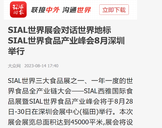 近日,一條“SIAL世界展會對話世界地標 SIAL世界食品產業峰會8月深圳舉行”的消息,被人民網、中國日報、環球時報等100多家主流媒體競相報道。一時間,食飲圈內與圈外紛紛熱議:這場號稱“聯動全球食品產業鏈”的思想盛宴究竟有哪些過人之處?