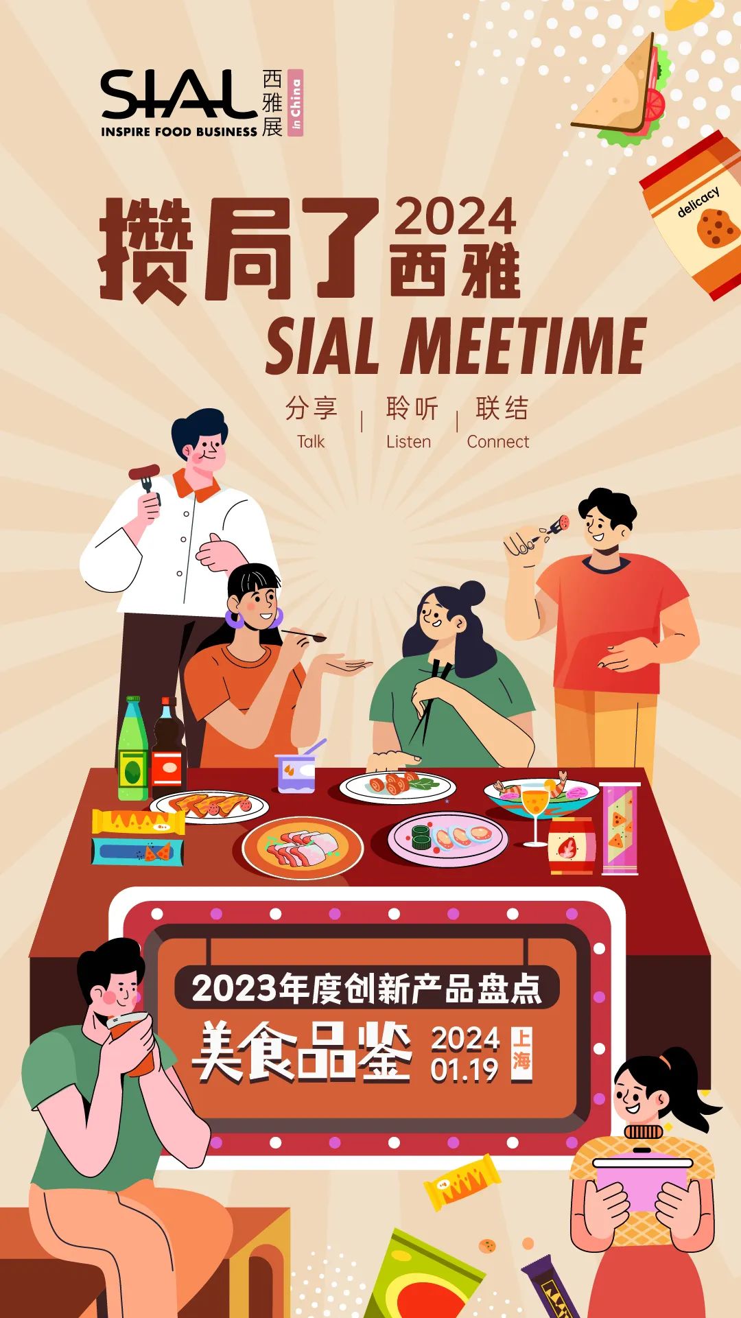 <SIAL Meetime 攢局了!西雅>是SIAL西雅展面向食飲行業(yè)推出的全新主題系列沙龍活動(dòng),每一期以不同形式主題活動(dòng)召集食品、飲料、餐飲行業(yè)從業(yè)者參與,在輕松愉悅的氛圍中獲取行業(yè)知識(shí),結(jié)交新的伙伴,開(kāi)拓更多潛在商機(jī)。2024年,<SIAL Meetime 攢局了!西雅>將繼續(xù)舉辦多場(chǎng)精彩的主題沙龍活動(dòng),敬請(qǐng)期待!