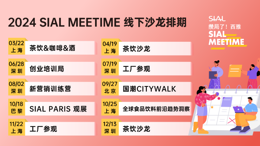 【SIAL Meetime 攢局了!西雅】是我們面向食品行業(yè)的全新主題系列沙龍活動,每一期以不同形式主題活動召集食品、飲料、餐飲行業(yè)從業(yè)者參與,在輕松愉悅的氛圍中獲取行業(yè)知識,結(jié)交新的伙伴,開拓更多潛在商機(jī)。