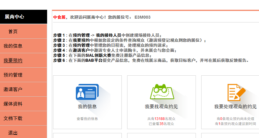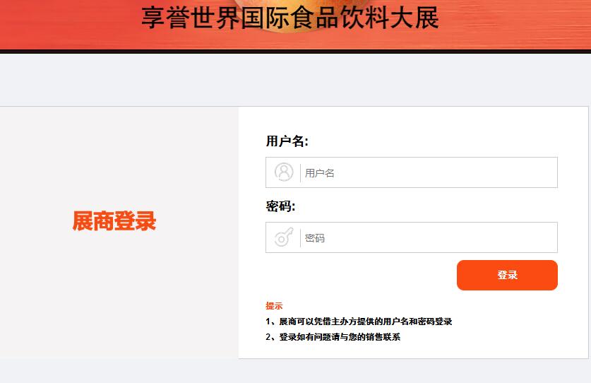 通過用戶名和密碼進(jìn)入展商中心,