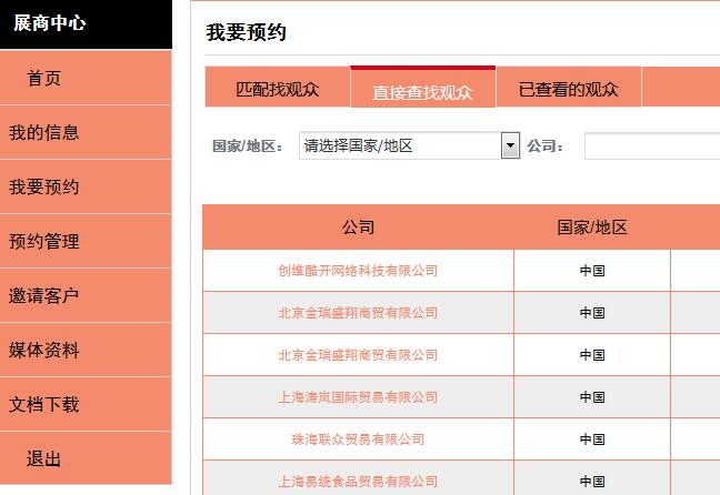 通過登錄系統(tǒng)不僅可以提前預(yù)覽展商名單,還能提前預(yù)約心儀的觀眾于5月14至16日間的任何時段于中食展現(xiàn)場見面,快捷高效。